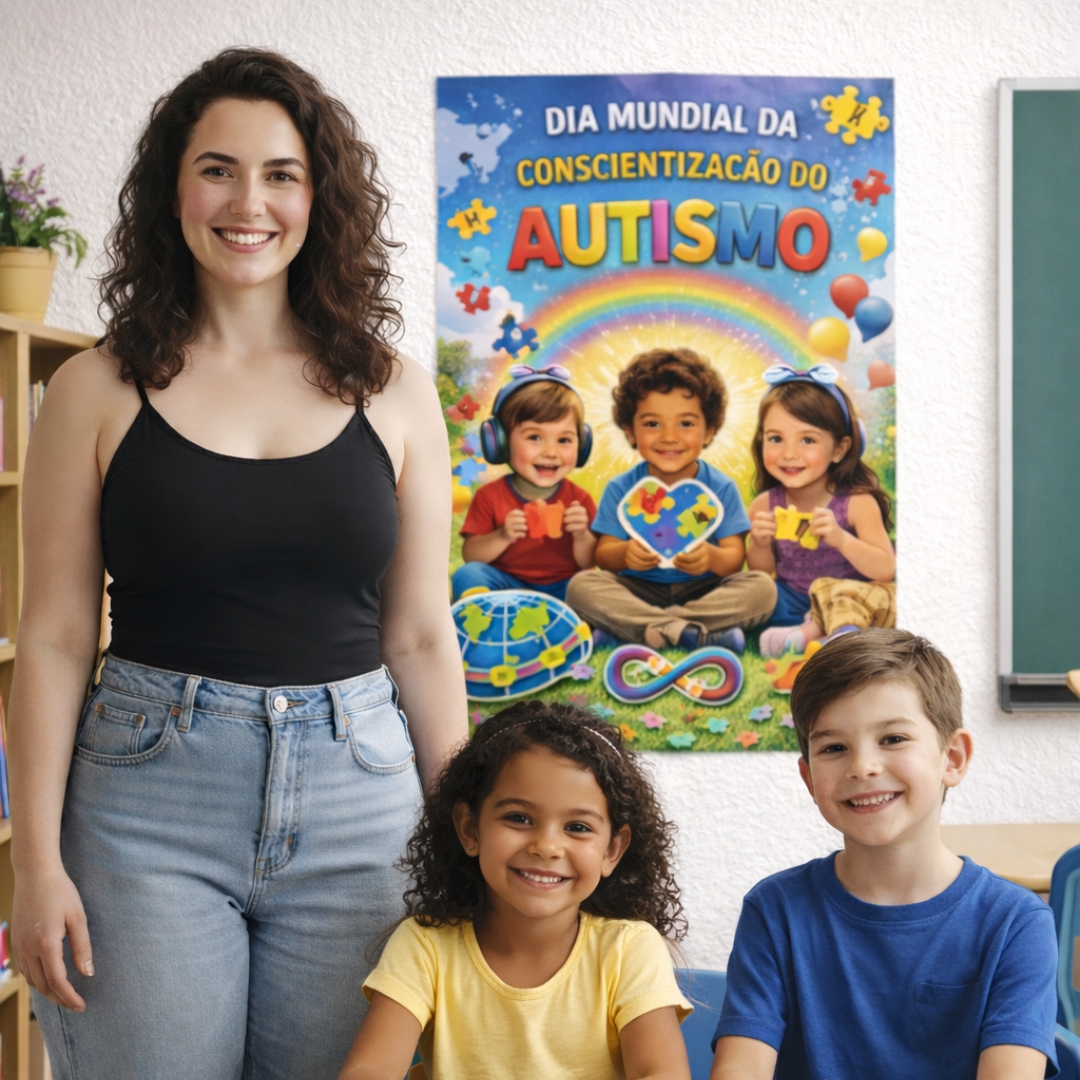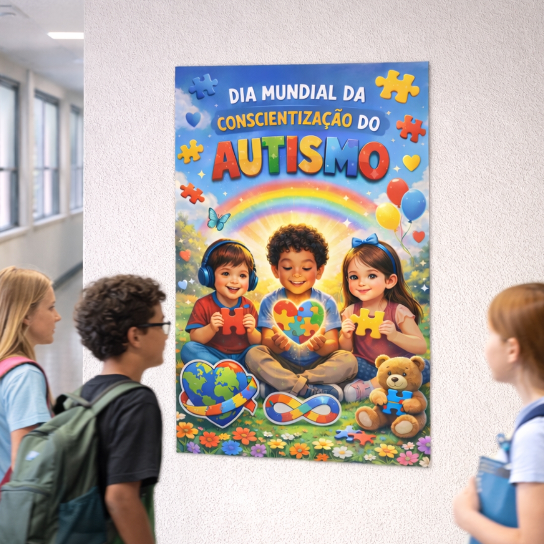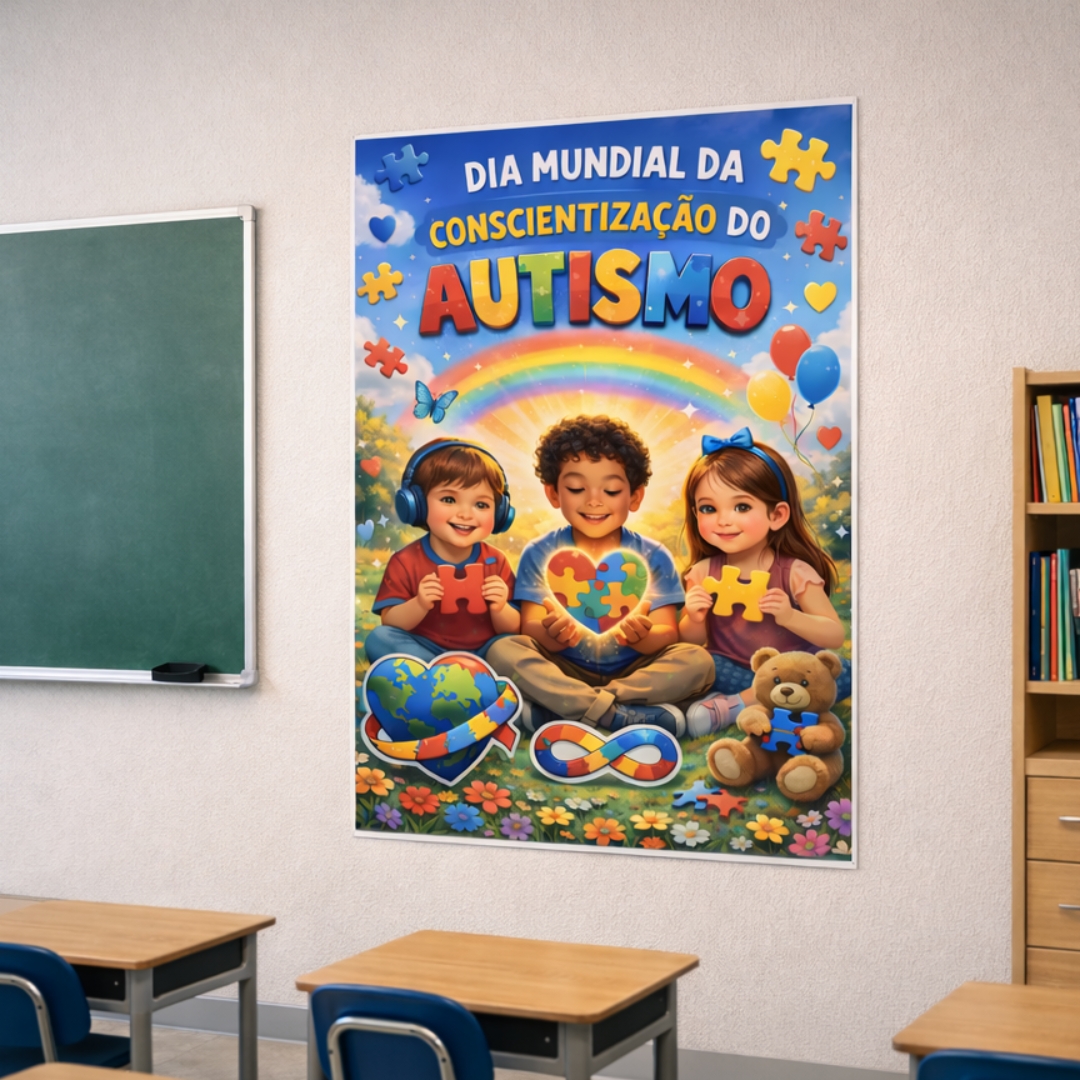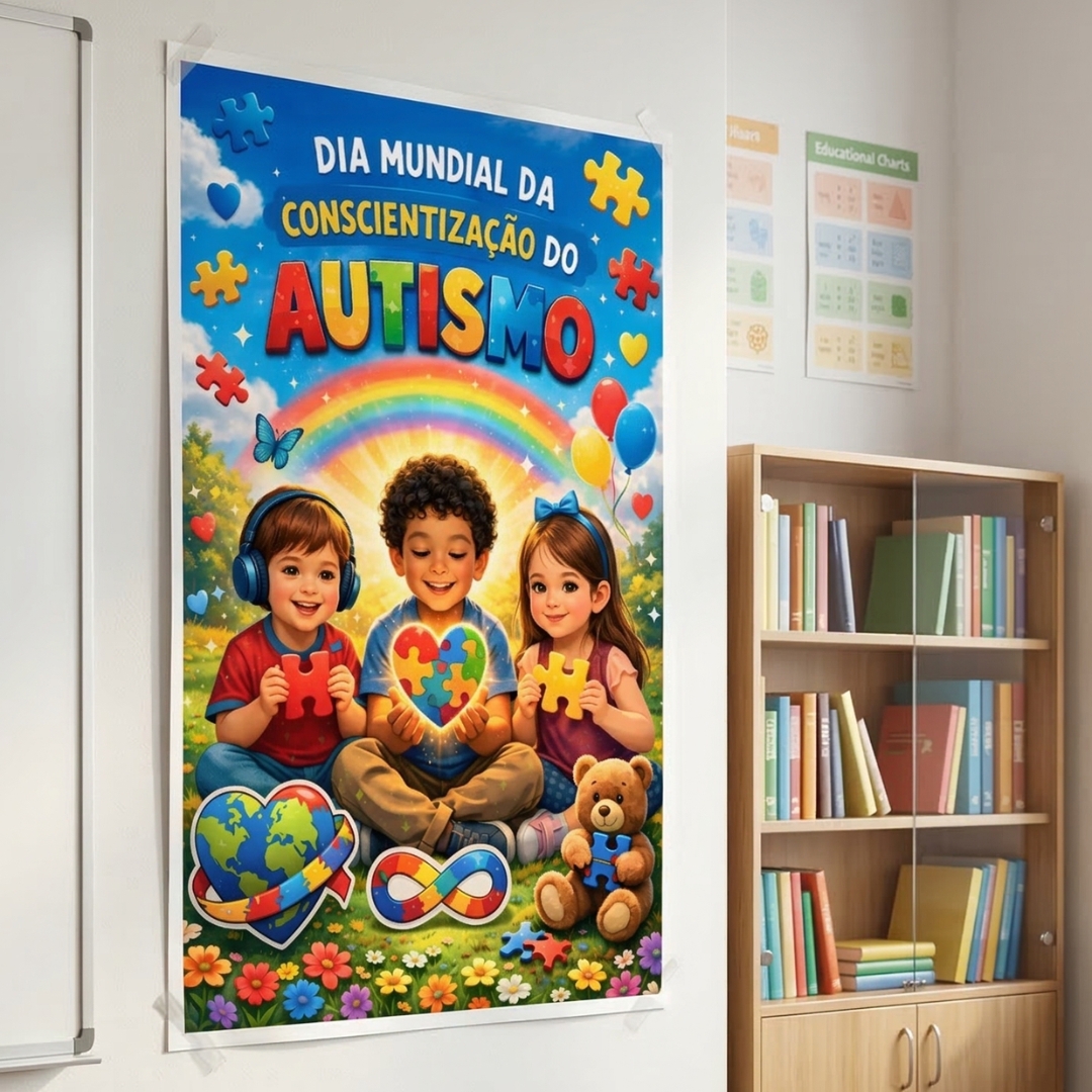 • Painel Dia Mundial da Conscientização do Autismo: Ele tem função educativa, informativa e de sensibilização dentro da escola ou da comunidade. Não é apenas decorativo; serve como ferramenta pedagógica para promover valores importantes como respeito, inclusão e empatia.
